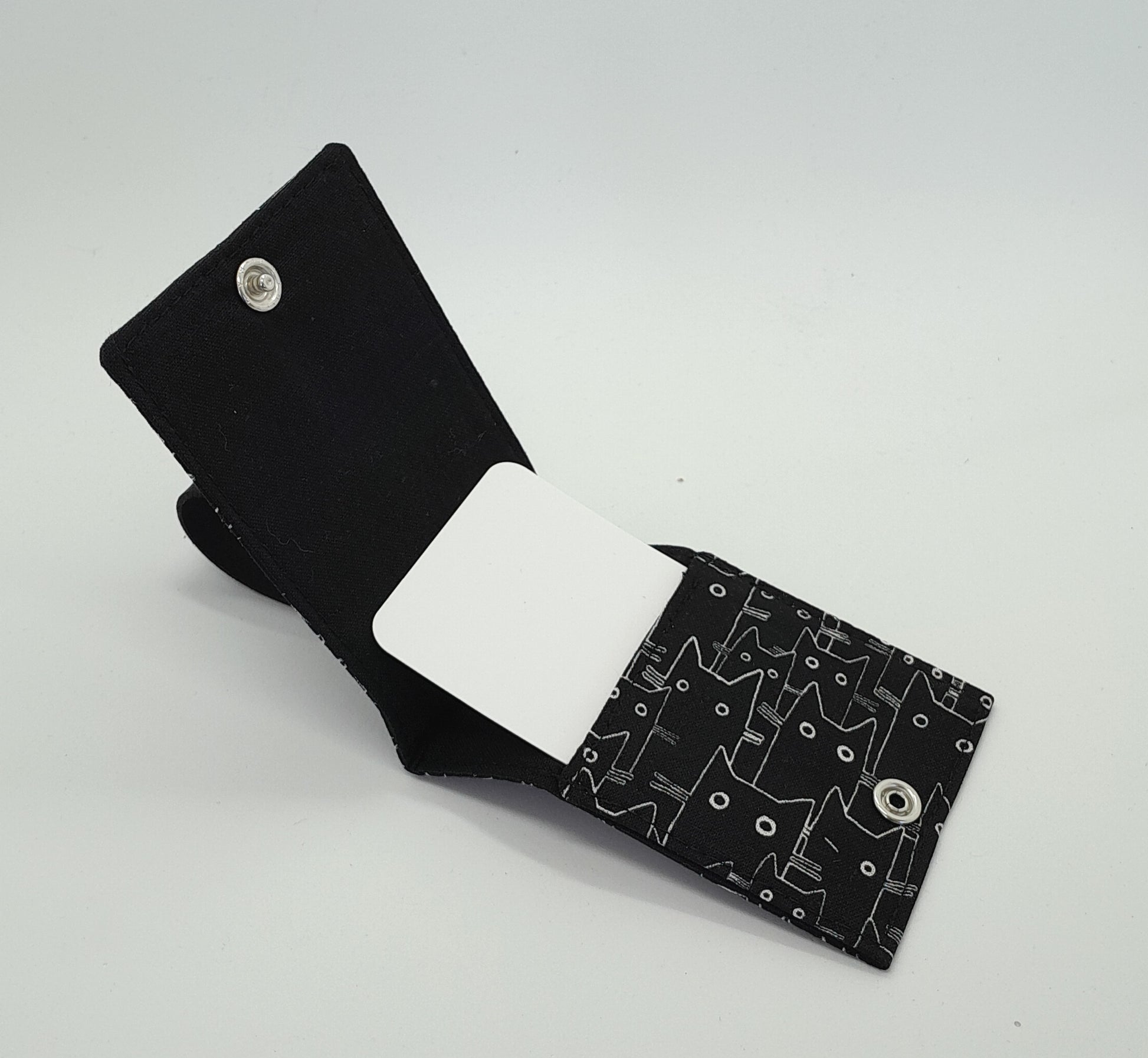 This super cute luggage tag is made from high quality cotton fabric and features a black 100% cotton lining, black vegan leather hanging loop and matching metal snap closure.